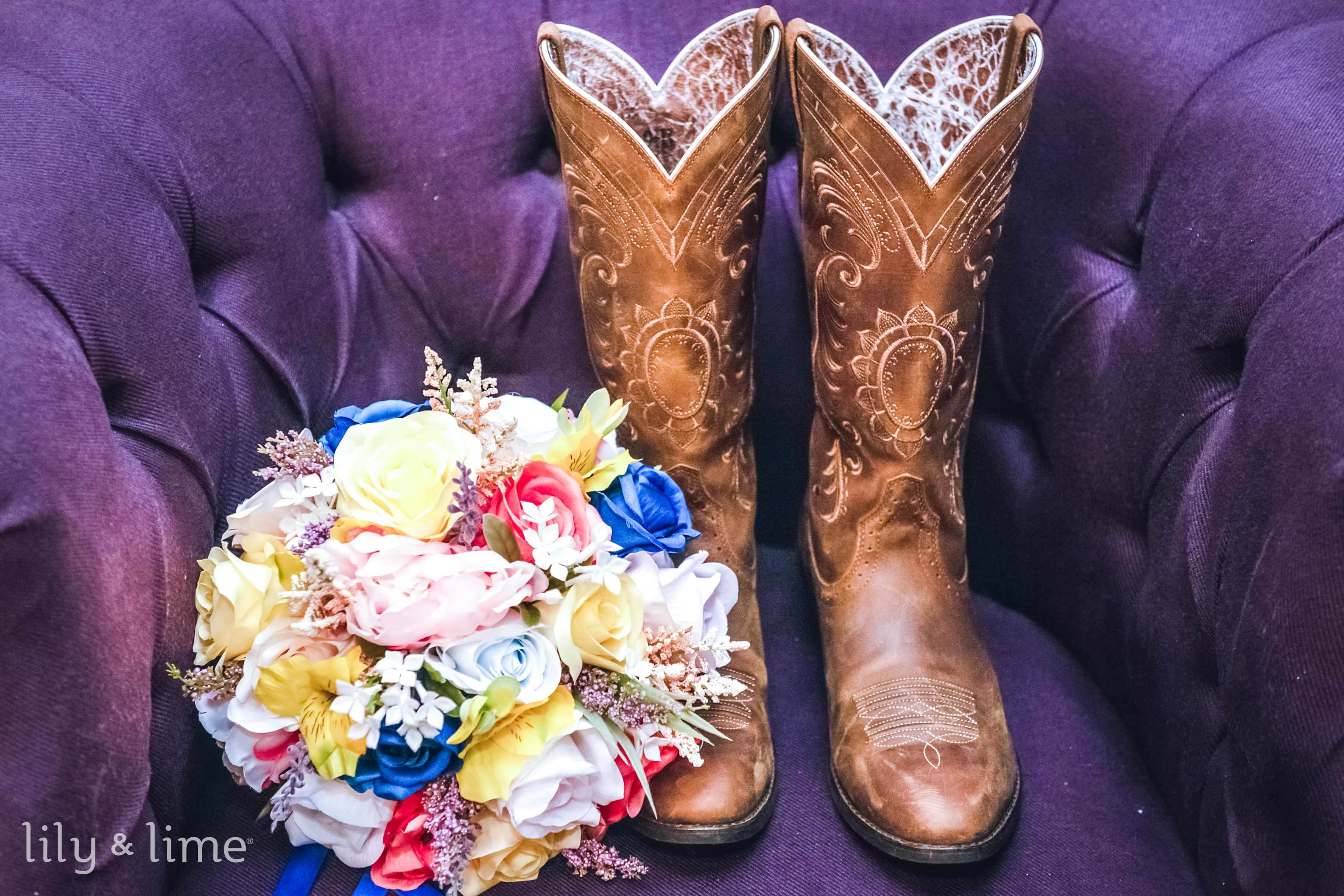 Embrace the deep, romantic burgundy hue of winter. It pairs wonderfully with blush pink or gold wedding accents for a moody color palette. Add burgundy roses to your bouquet, matching linens, and burgundy accents to your wedding cake. You can even have the groomsmen wear burgundy blazers and dress your bridesmaids in burgundy dresses.