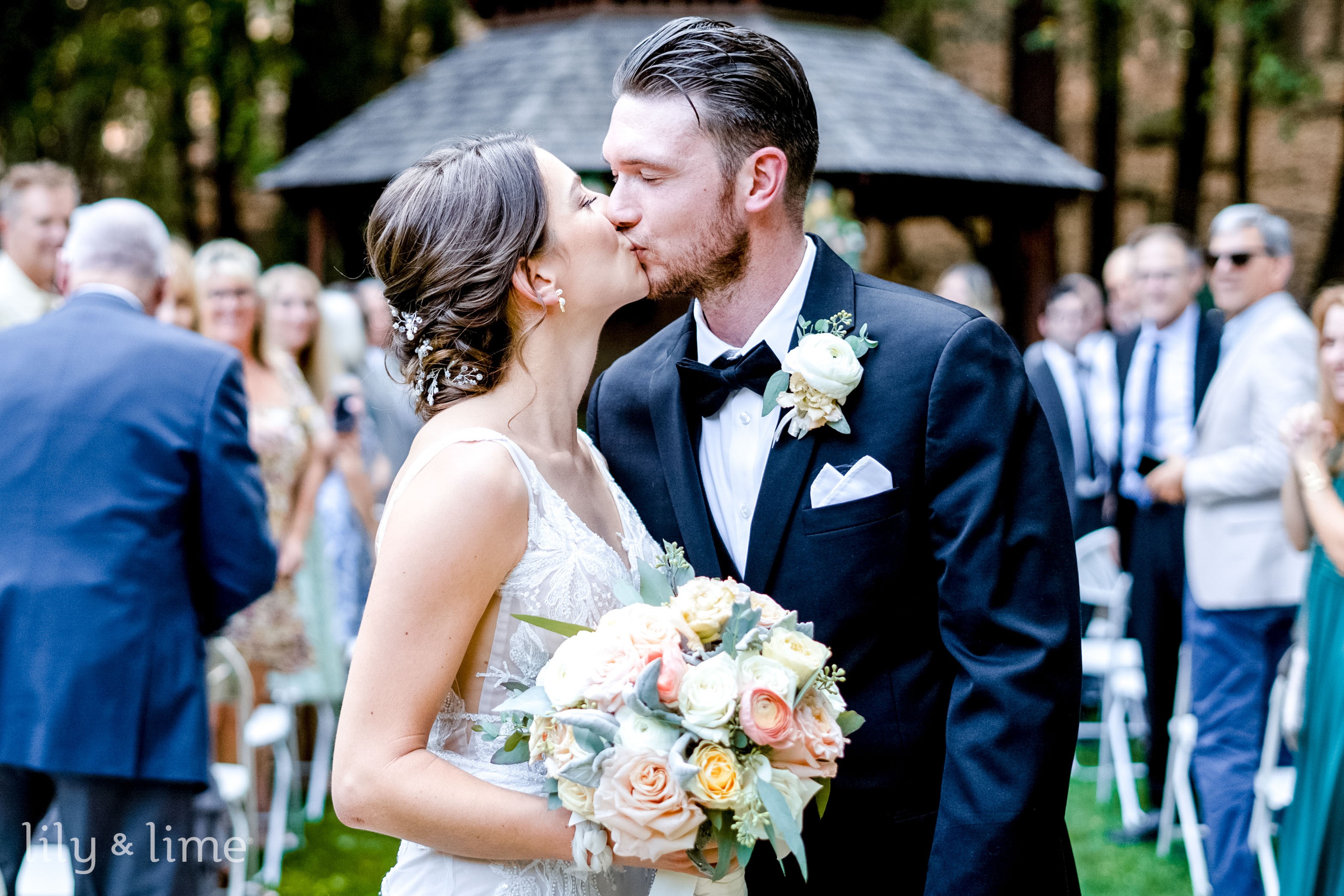 The most special and emotional moments of our bride's wedding day left us teary-eyed—the sight of the bride walking down the aisle and the heartfelt exchange of vows against the backdrop of a rustic gazebo. When Briana and Dane uttered their wedding vows, their gazes filled with hope, joy, and profound emotions, there wasn't a dry eye in the wedding ceremony. The outdoor celebration, with the elegant rustic ceremony setting and picturesque view, was captivating and impressive in all the wedding photos. The couple's first kiss and the emotions exchanged during the ceremony were picture-perfect, resulting in some of the most stunning wedding portraits. They even went on to perform a unity ceremony with candles as a testament to their new beginning. This was one of our favorite alternative wedding ideas that were preserved in gorgeous wedding portraits. After the ceremony, everyone quickly gathered for beautiful family wedding portraits.