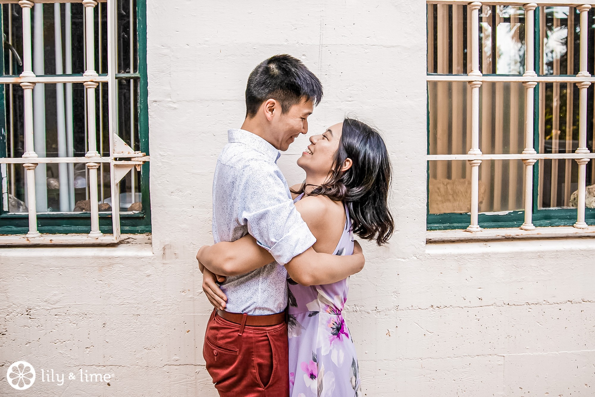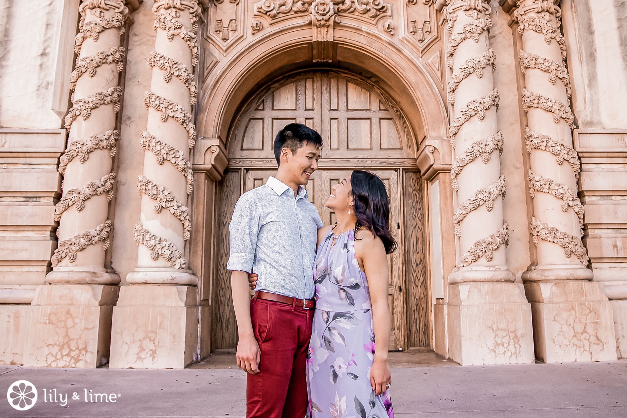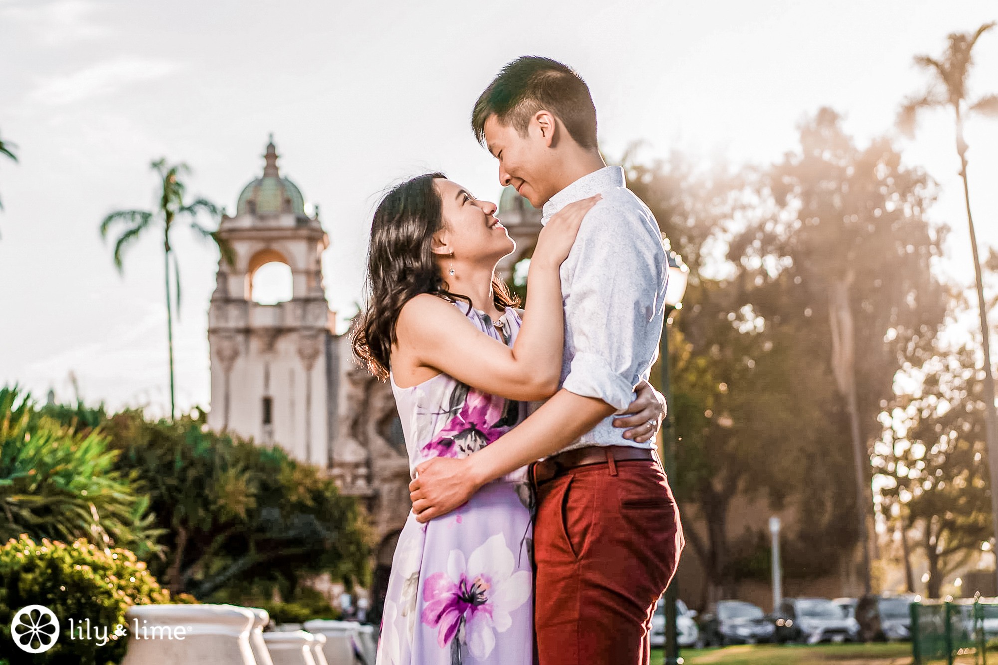 After they got ready, Rebecca and Kenneth headed to the historic Balboa Park for their engagement photography session. That was truly an excellent choice going by the vibrant and classic backdrops that this photogenic location in San Diego has to offer. The lovebirds decided to wear trendy casual outfits for their amazing and memorable engagement photography session in San Diego. The swoon-worthy and Pinterest-inspired couple poses in Balboa Park stole our hearts.