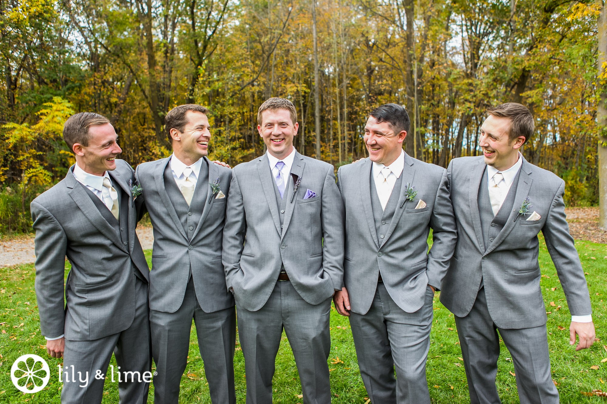 Looking for the perfect fall groom attire to pair with purple? Grey suiting complements a vibrant violet so well. It’s a nice way to toe that line between something classic and fashion-forward.