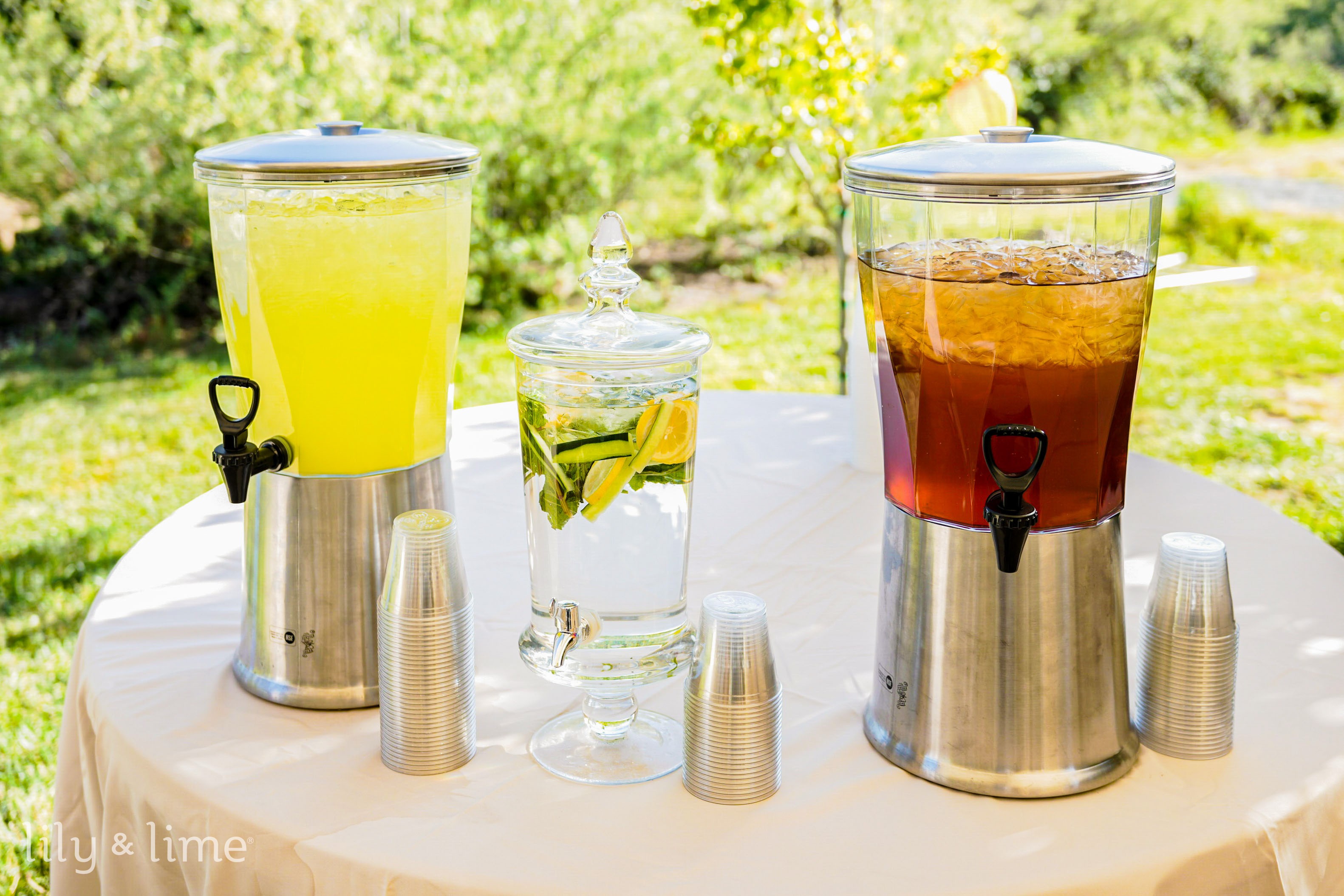 Lemonade Stand: A lemonade stand is a great way to offer non-alcoholic beverages to your guests. Set up a self-serve station with several pitchers of lemonade and various add-ins, such as mint leaves, sliced strawberries, or lavender syrup. You could also provide sparkling water and a variety of fresh fruit to create a fizzy and refreshing drink that's perfect for a summer wedding.