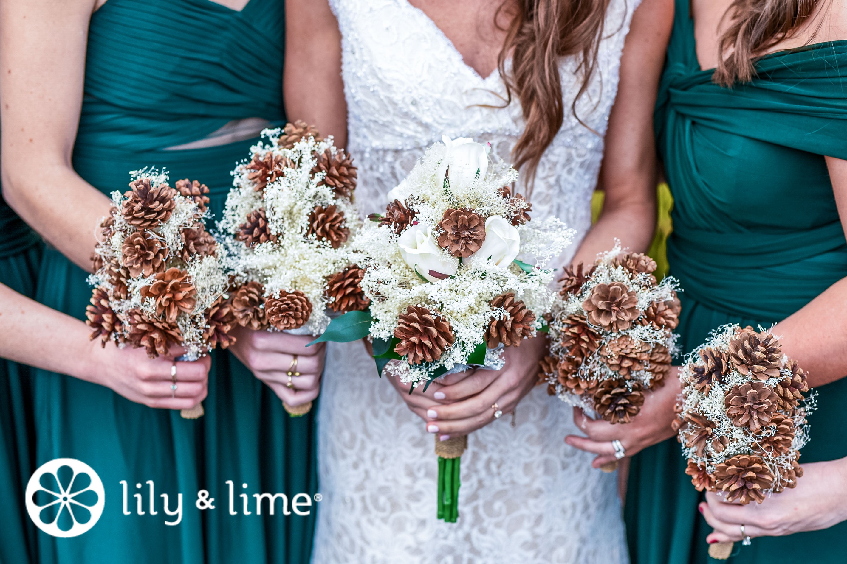 Another amazing way to include pine cones in your wedding is by having a pine toss! Instead of using the traditional flower bouquet for the bouquet toss, use a small pine cone bouquet. You can either create one from scratch for yourselves. On the other hand, there are quite a few vendors in the market selling creatively made pine cones bouquets. And once you lay your eyes on them, you’d definitely want to replace all the flower bouquets with them in your winter wedding. It will be a creative twist on something traditional. Chances are that your guests will actually end up enjoying this twist, and this will make more bachelorettes participate in the toss, as the toss is becoming a thing of the past in quite a few weddings these days.
