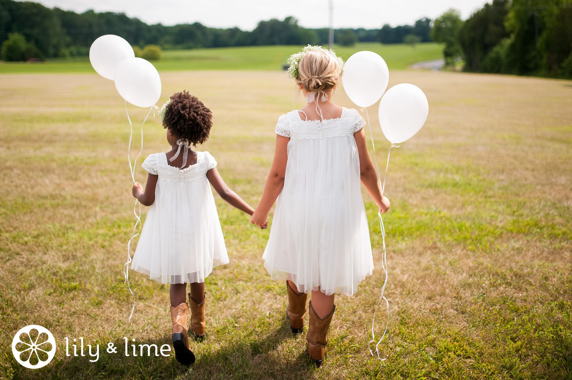 We love the way that brides are using flower girl accessories to infuse a little personality into the flower girls’ looks. You can accent the flower girls’ dresses with flower crowns or headbands, depending if you want a more ethereal or polished look. The flower girl baskets can be another way to add pizzazz. Add a ribbon to match the bridesmaid dresses or opt for burlap baskets for something with more DIY, country flair.