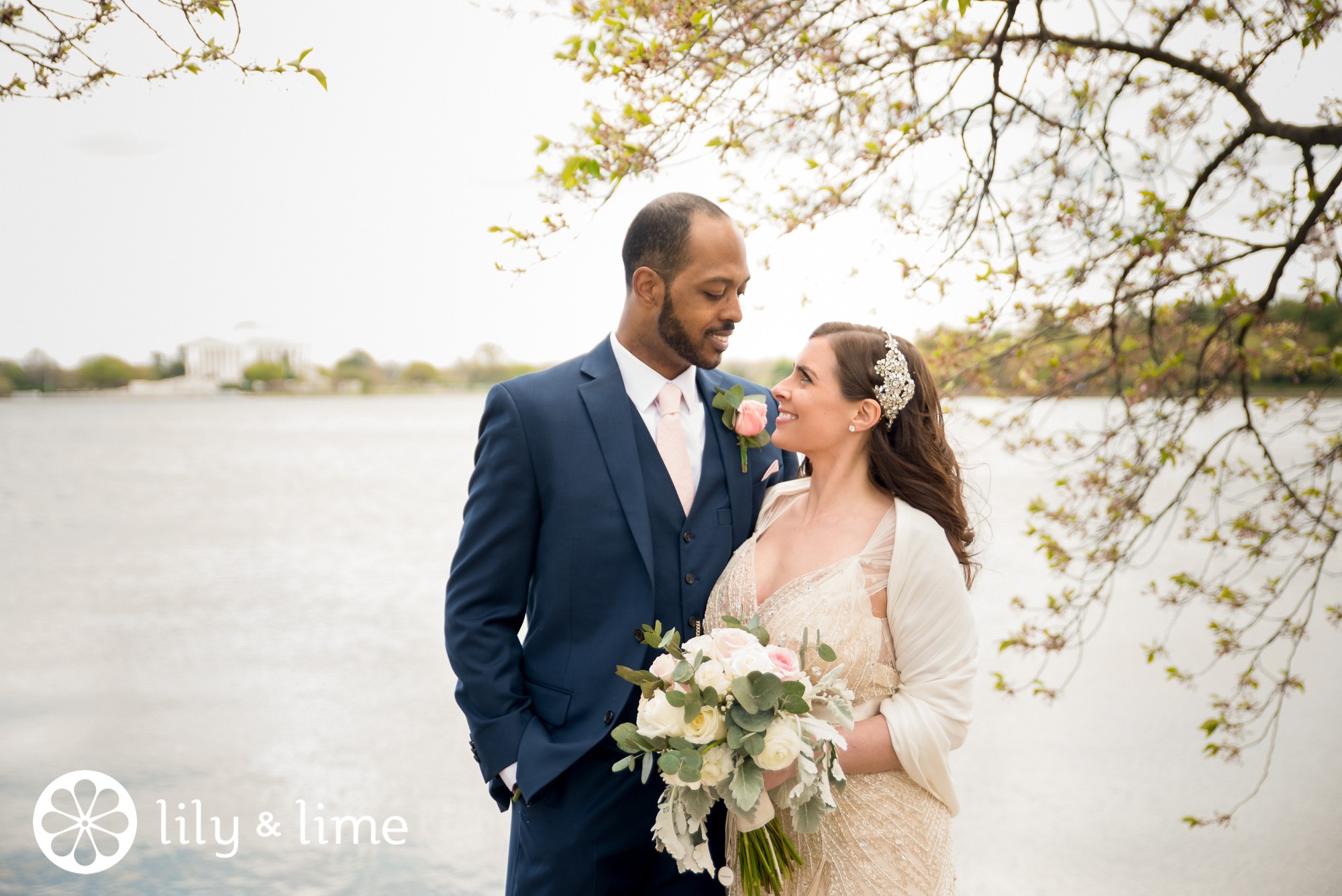 Planning a themed wedding? We love how the wedding photographer captured this couple posing with a classic car and her chic fur-trimmed jacket. The bride’s jacket was both functional and fashionable! We thought it really complemented the theme of the day.