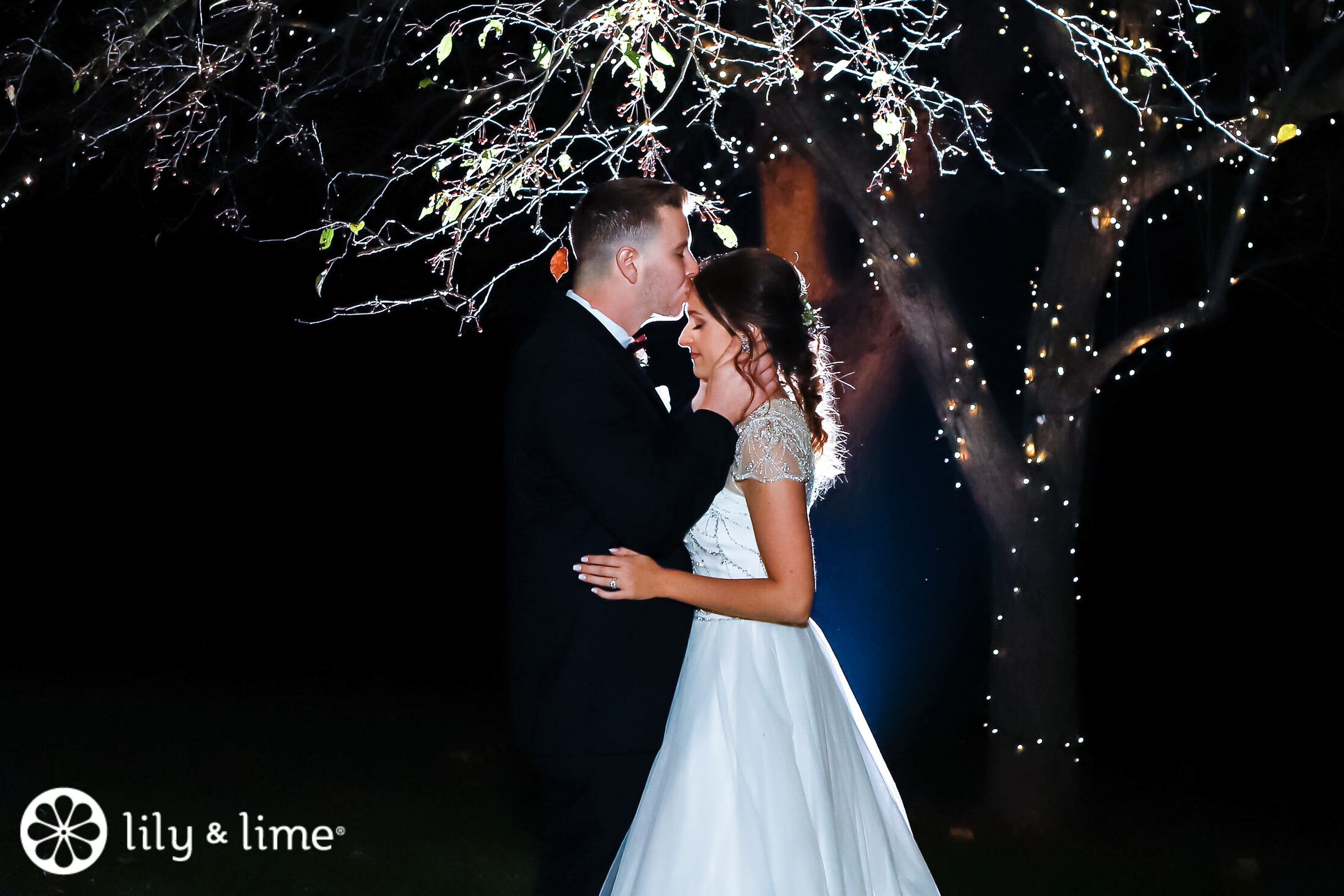 As the night was all set to engrave this day in its memory forever, our couple made the night to remember with some assistance from our Harrisburg wedding photographers! Their night couple portraits were straight for the books! They just looked fantastic with the lighted tree in the background! Words are not enough to describe the beauty of their night couple portraits! Now that Jeffery and Michelle had their first dance and cut their wedding cake, it was time for their grand finale! They had an exciting and dramatic sparkler wedding day exit! And not to forget the last kiss that our photographers captured under those glitters and sparklers was nothing but whimsical!