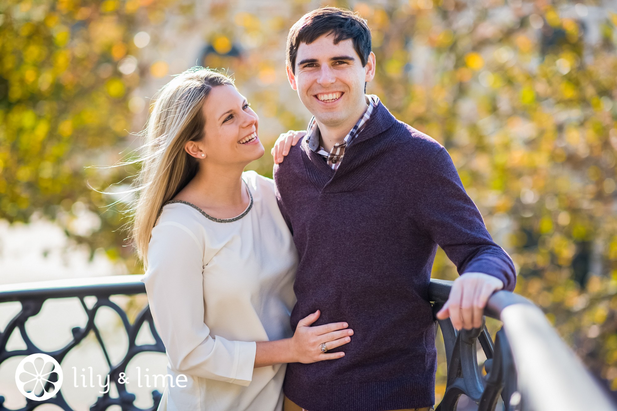 The soon-to-be newlyweds sported the perfect fall look: Richard in a Burgundy sweater and Jen in a white long sleeve shirt - a casual nod to the white dress on her wedding day! At the end of the session, the couple threw on their peacoats for an extra fall touch.
