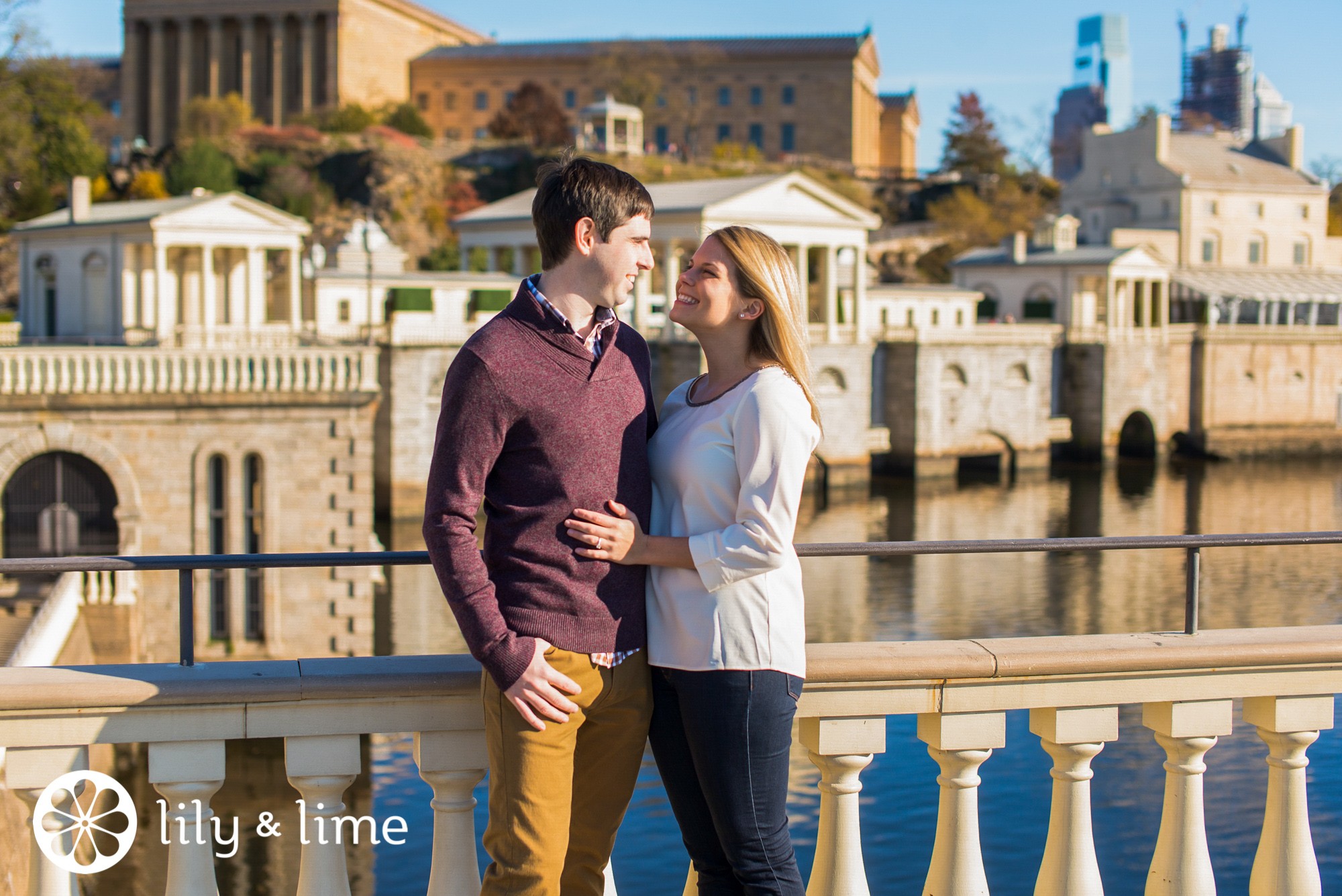 While we love it when couples incorporate a good prop into their engagement photos, sometimes it’s just as swoon-worthy when they opt for a pared down session. Jen and Richard kept things casual, and comfort was of the utmost importance. It’s easy to see that they felt like themselves, and their Philadelphia Lily & Lime engagement photographer perfect captured their authenticity.