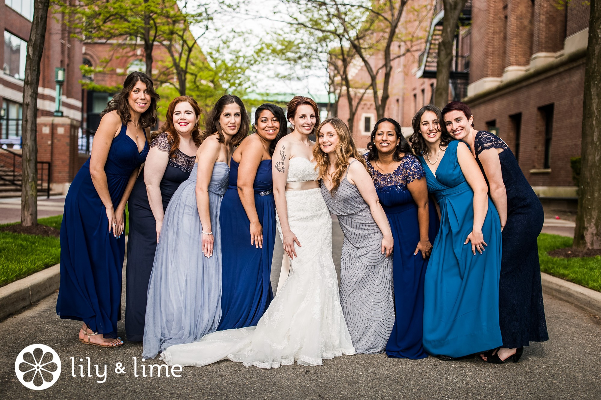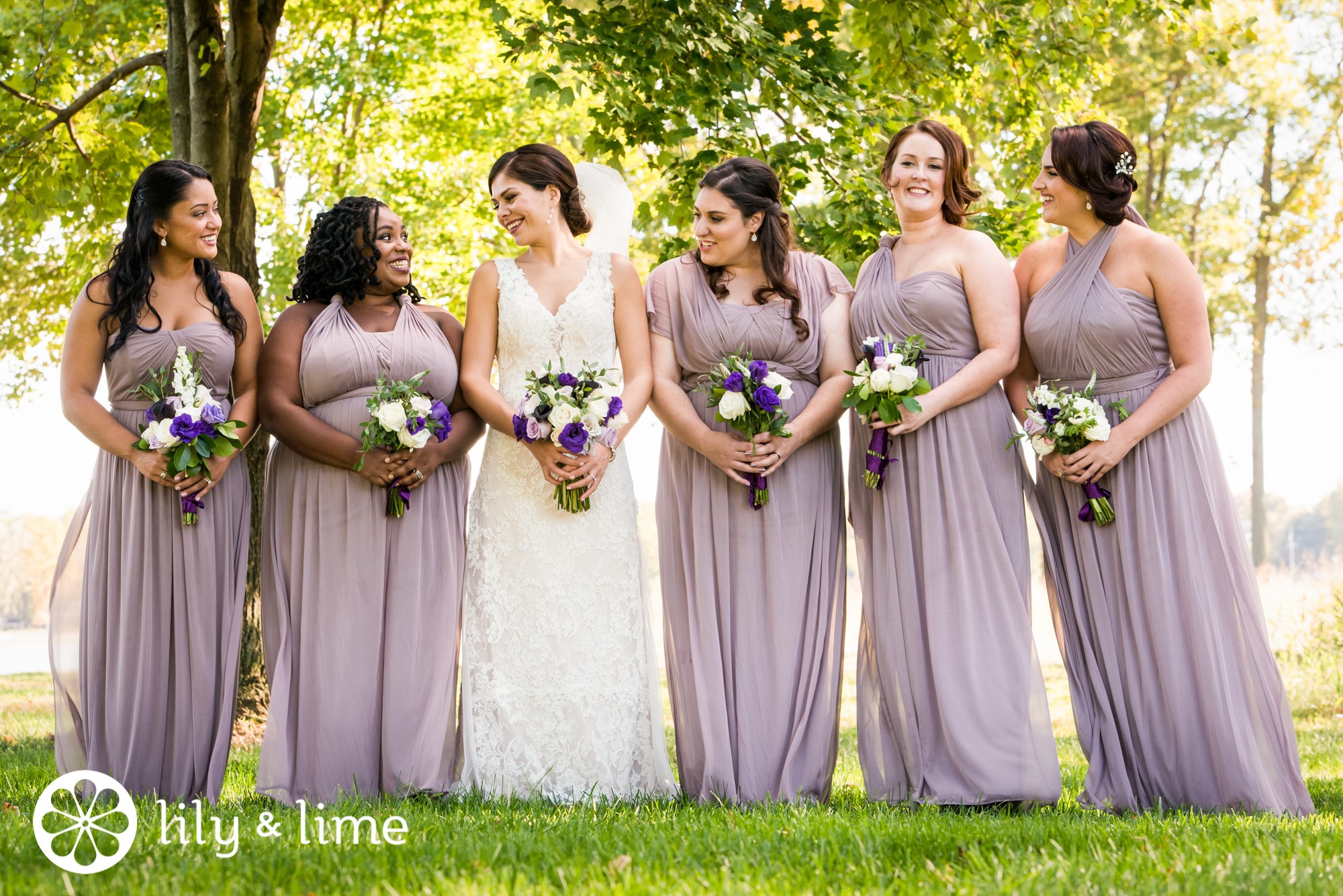 If you prefer a classic wedding style, you can still let your girls choose their own neckline and strap preferences. Simply tell them the color, fabric and designer, and the rest is up to them! The subtle variation will lend a pop of interest in the wedding photography, and allow each girl have the fit they feel most confident in. It’s a win-win!