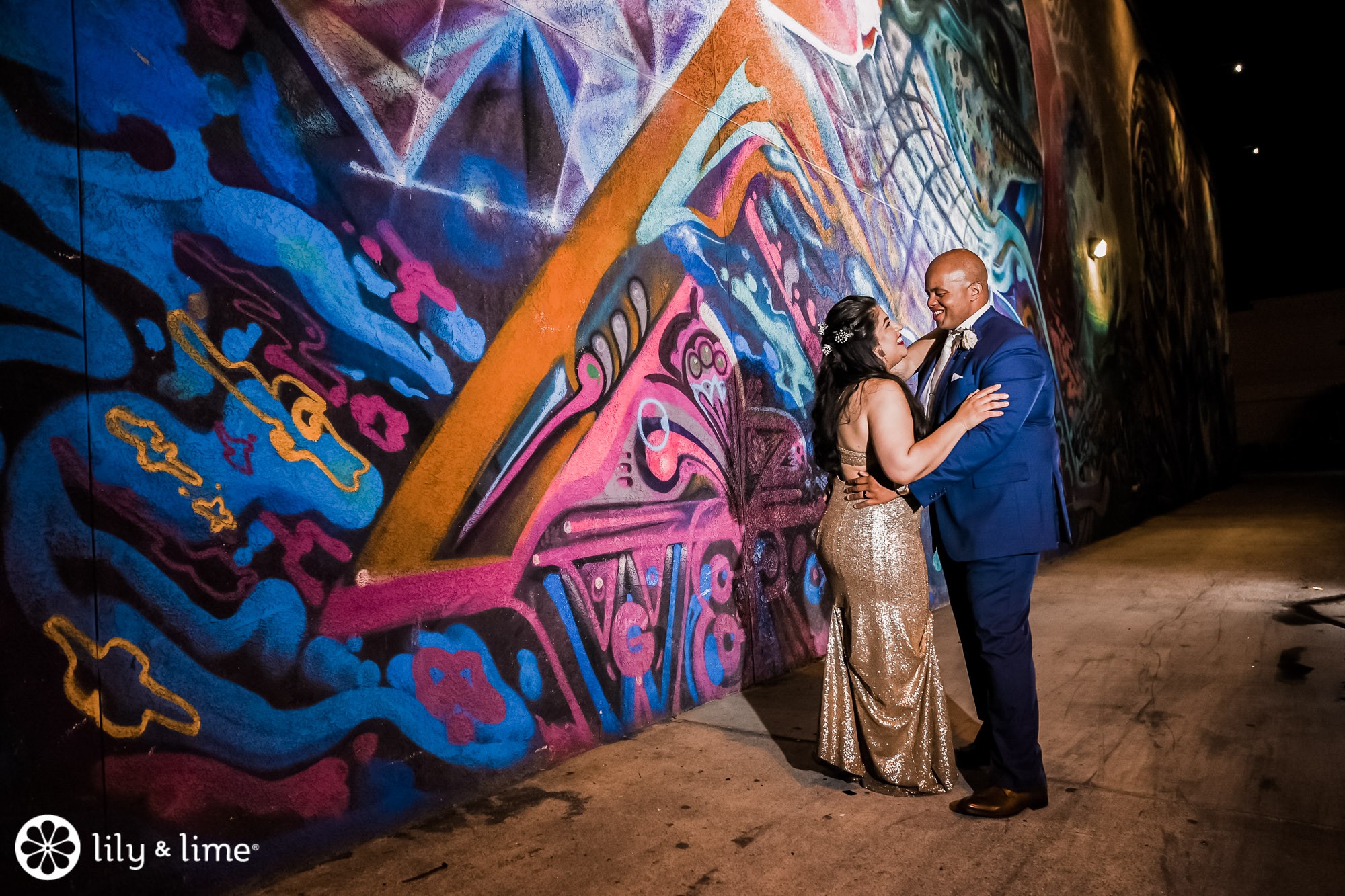 If there's one thing we all need to learn from Kim Kardashian West's wisdom, it's not the art of contouring. It's the importance of using lighting to get the most flattering photos possible. Because New Years' Eve is the unofficial holiday of spectacular lighting -- the glitz, the glam, the sparkler countdown-- we're ending 2018 with a celebration of some of our fave lighting approaches for night time wedding photography.