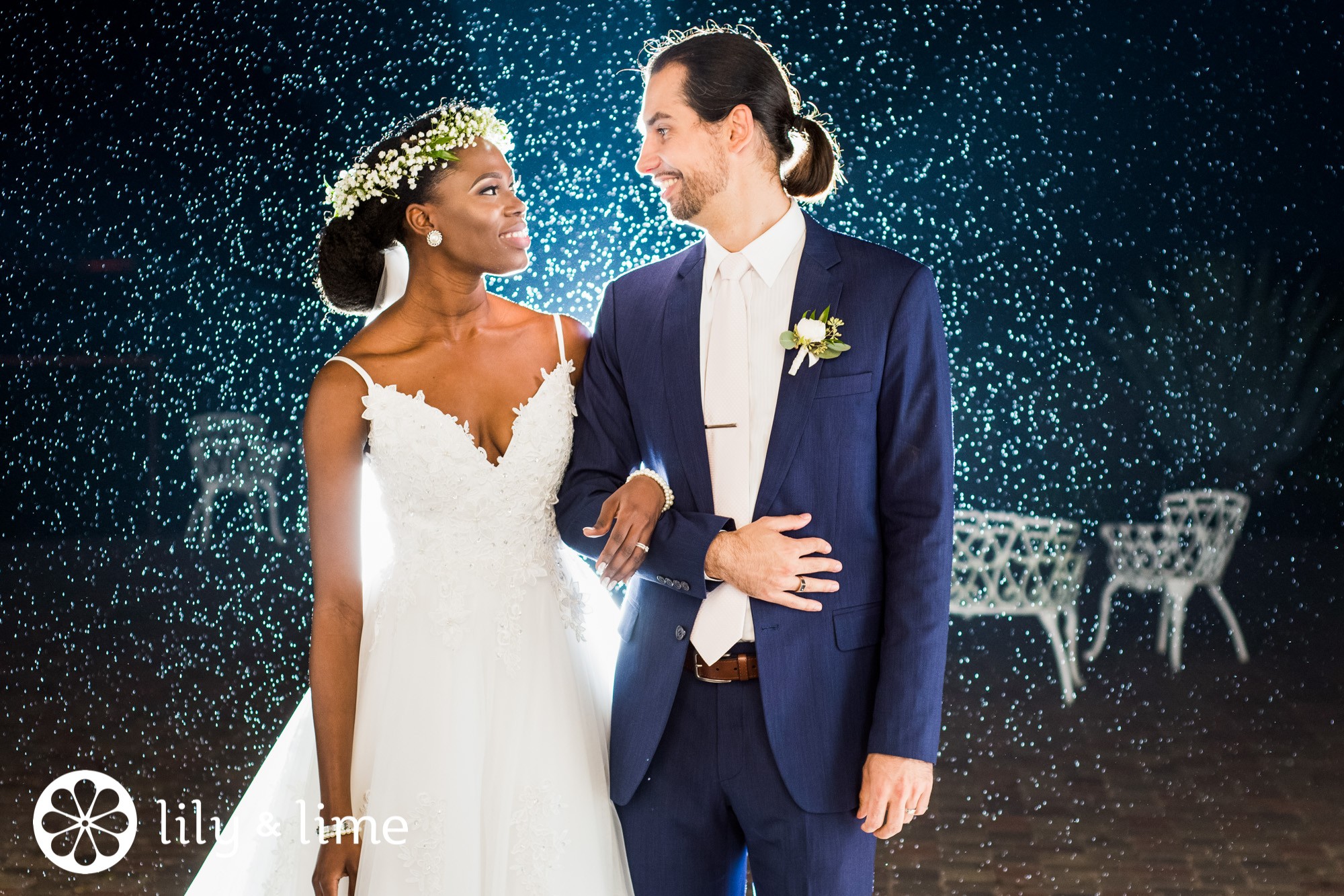 Sheila and Bulcu didn’t let a little rain ruin their big day, and neither did their wedding photographer. Instead, they grabbed a clear umbrella and embraced the raindrops for some romantic shots.