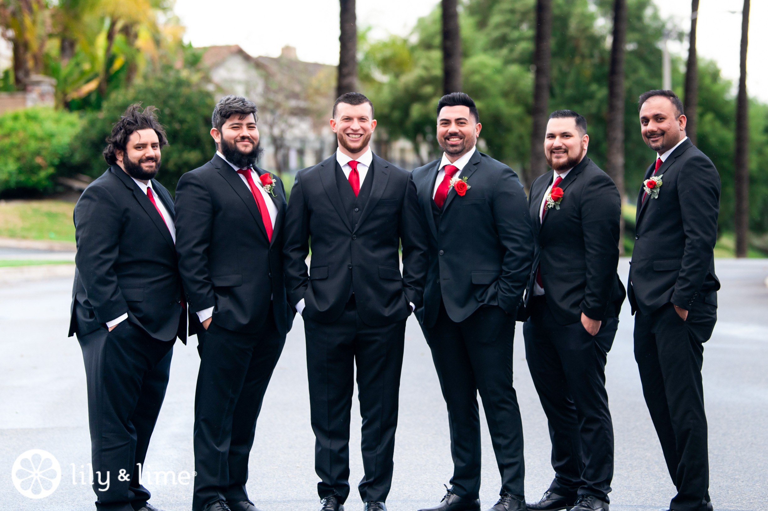 Our handsome groom Aaron looked equally stunning as he came all dressed up in a black three-piece formal suiting looking like Prince Charming! The sensuous formal groom look was gracefully played with a bright red tie and crisp white shirt which was again paired with a pair of shiny black formal shoes. His neatly trimmed beard and nicely dressed hair made him look picture perfect!