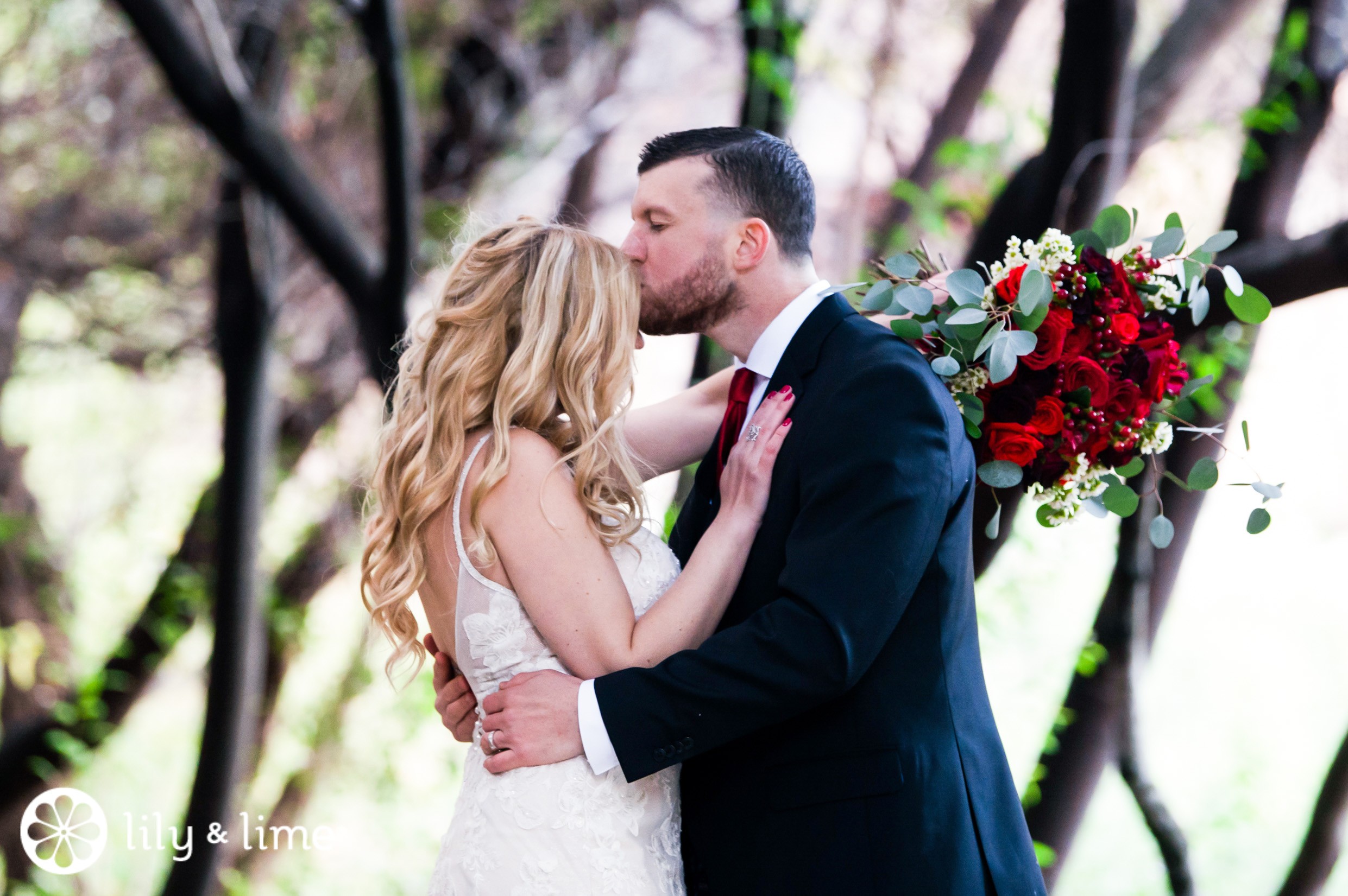 As we know that the devil lies in the details, this wedding was crammed to the brim with stunning details that were carefully placed in every corner. Our amazing Riverside wedding photographers captured the amazing and immaculately detailed red and white winter wedding of Aaron and Viktoriya. Let us go through the photography journey of this holiday-themed wedding to see for ourselves why documenting this unforgettable wedding day in Riverside became one of the fondest memories of our talented team of wedding photographers. The detailed wedding shots firstly revealed the gorgeous white wedding cake with edible red roses used as toppers. The stunning cake was placed on a golden plate and white dessert table that was adorned with red rose flower petals. The second detail shot revealed the rustic wedding welcome sign that was a dark accent brown welcome board with white calligraphy letters. It said, "welcome to our forever Aaron and Viktoriya" along with their wedding date.