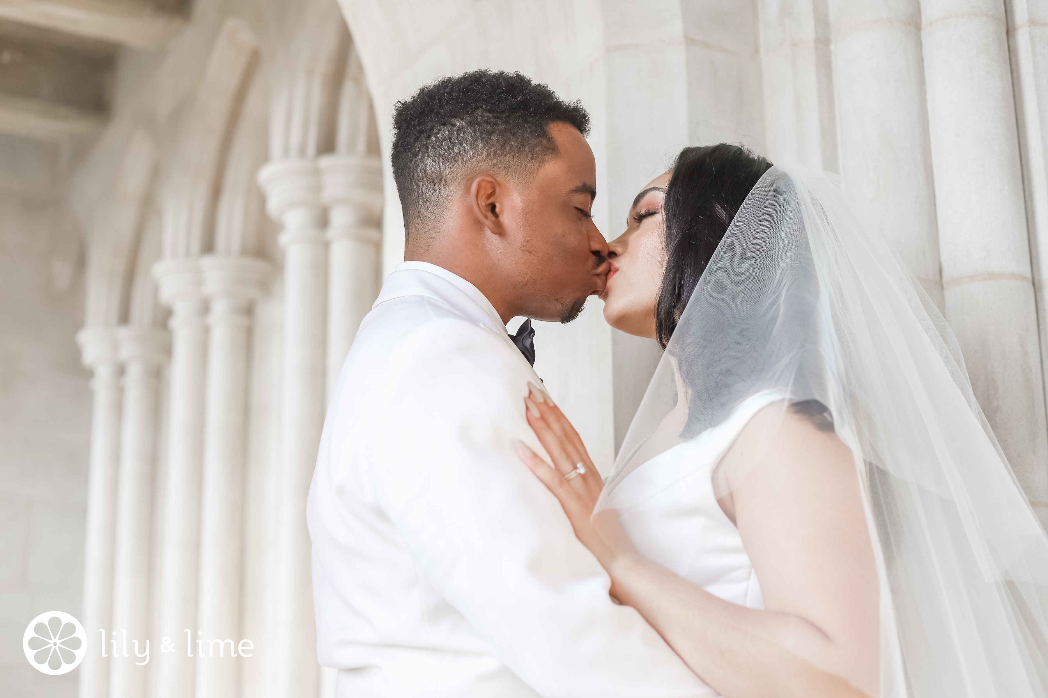 Quiana and Leonard’s perfect moment arrived at the Washington National Cathedral, where they took their wedding vows. Washington National Cathedral lies in the District of Columbia and is a self-described ‘house of prayer for all people’. It is an American cathedral of the Episcopal Church boasting a Neo-Gothic design closely modeled on the English Gothic style of the late fourteenth century. It dates back to the early 1900s and the third-largest church building in the United States. The cathedral's iconic architecture is a great mix of influences from the various Gothic architectural styles of the Middle Ages, identifiable in its pointed arches, flying buttresses, a variety of ceiling vaulting, stained-glass windows and carved decorations in stone, and by a set of three towers. Over two hundred stained glass windows provide a beautiful look to the Cathedral and make for a delightful Washington National Cathedral photography.